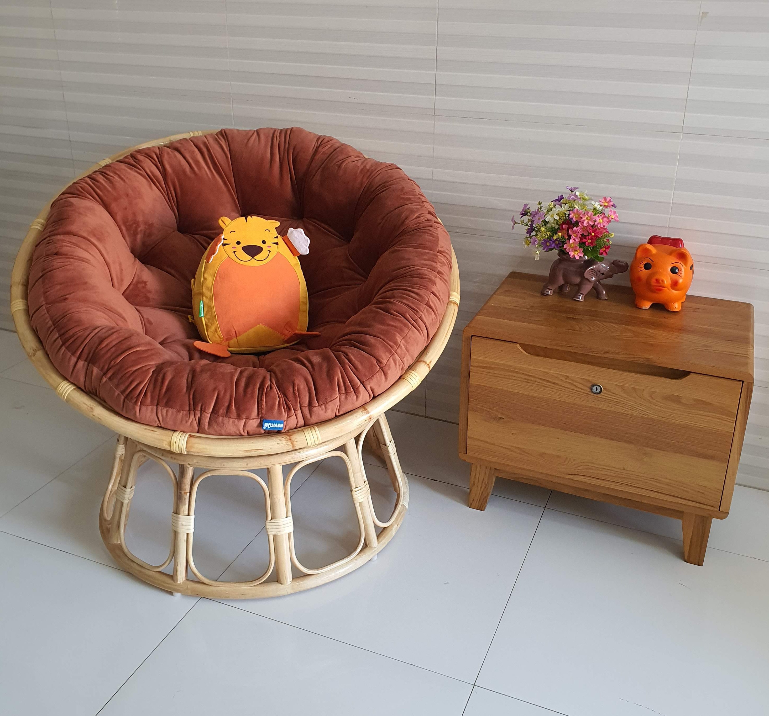 - Kích Thước : D 1m x cao 74cm - Chất liệu : + khung : mây song mật + nệm : gòn bi xuất khẩu bọc vải nhung Ghế thư giãn papasan phù hợp
