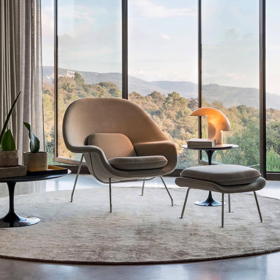 Quý khách hàng vui lòng chọn sản phẩm nhà bán TUNDO để nhận được sản phẩm đúng với chất lượng Ghế thư giãn Womb Chair của nhà thiết kế – kiến trúc sư Eero Saarinen năm 1948 được thiết kế bởi lời thách thức của Florence Knoll về việc tạo ra một chiếc ghế mà “người dùng có thể cuộn tròn bên trong”. Từ cảm hứng đó Eero Saarinen đã cho ra đời một chiếc ghế được xem là biểu tượng của dòng ghế thư giãn của nội thất hiện đại lúc bấy giờ Womb chair không chỉ đem lại cảm giác êm ái, thoải mái mà còn cho người dùng sự cơ động dù ở bên trong ghế. Phần chân inox chắc chắn, chịu lực tốt, có tựa lưng giúp cho người ngồi thư giãn, không mỏi lưng. Nệm bọc nỉ, simili, microfiber. Kích thước: H89xW93xD99cm Phù hợp để trang trí phòng khách, phòng đọc sách, phòng lễ tân.