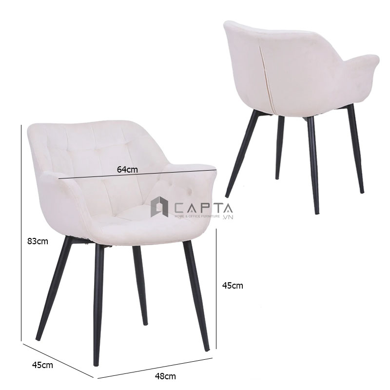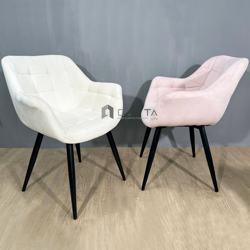✨Ghế trang điểm có lưng tựa LARA 3A-F Nội thất Capta Ghế café nệm vải nhung may caro sọc vuông có tay vịn chân sắt đen