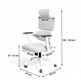 - Tính năng xoay và nâng hạ linh hoạt: Ghế hỗ trợ chức năng xoay 360 độ và có thể nâng hạ chiều cao dễ dàng, giúp người sử dụng có thể điều chỉnh phù hợp với mọi bàn làm việc và đảm bảo tư thế ngồi thoải mái. Kích thước chi tiết: