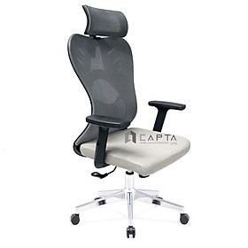 Lưng tựa hình chữ S cong theo cột sống. Điểm đặc biệt là lưng ghế được trang bị thêm miếng đệm nhựa ngay vị trí thắt lưng giúp giảm mỏi hiệu quả. Tay ghế nhựa chữ T hiện đại nâng hạ chiều cao theo tư thế ngồi làm việc. Ghế làm việc có tựa đầu tùy chỉnh độ cao xua tan các cơn nhức mỏi cổ vai gáy.