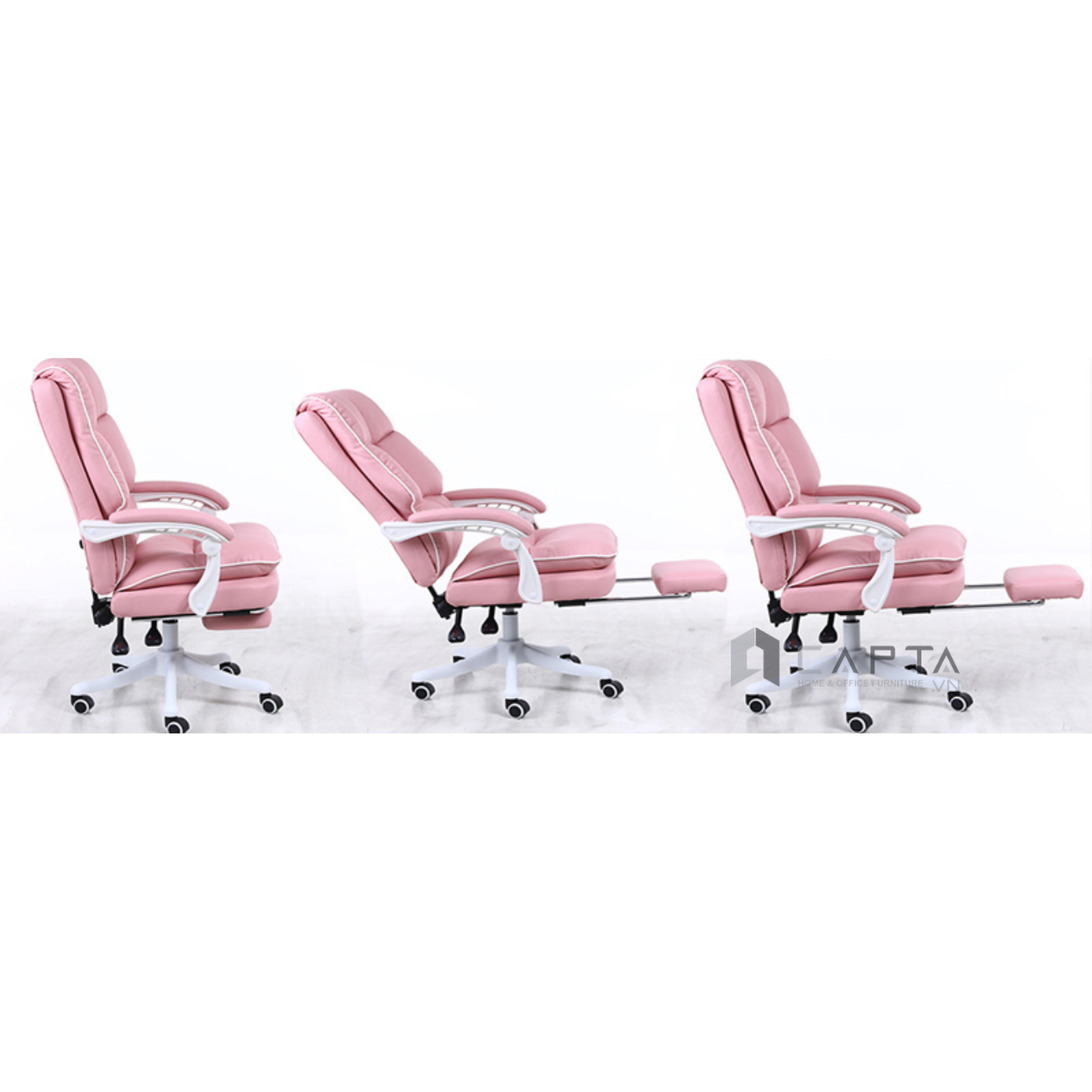Ghế xoay văn phòng nệm dày êm lưng Ghế gaming màu hồng có gác chân cho nữ livestream chơi game CR4104-P