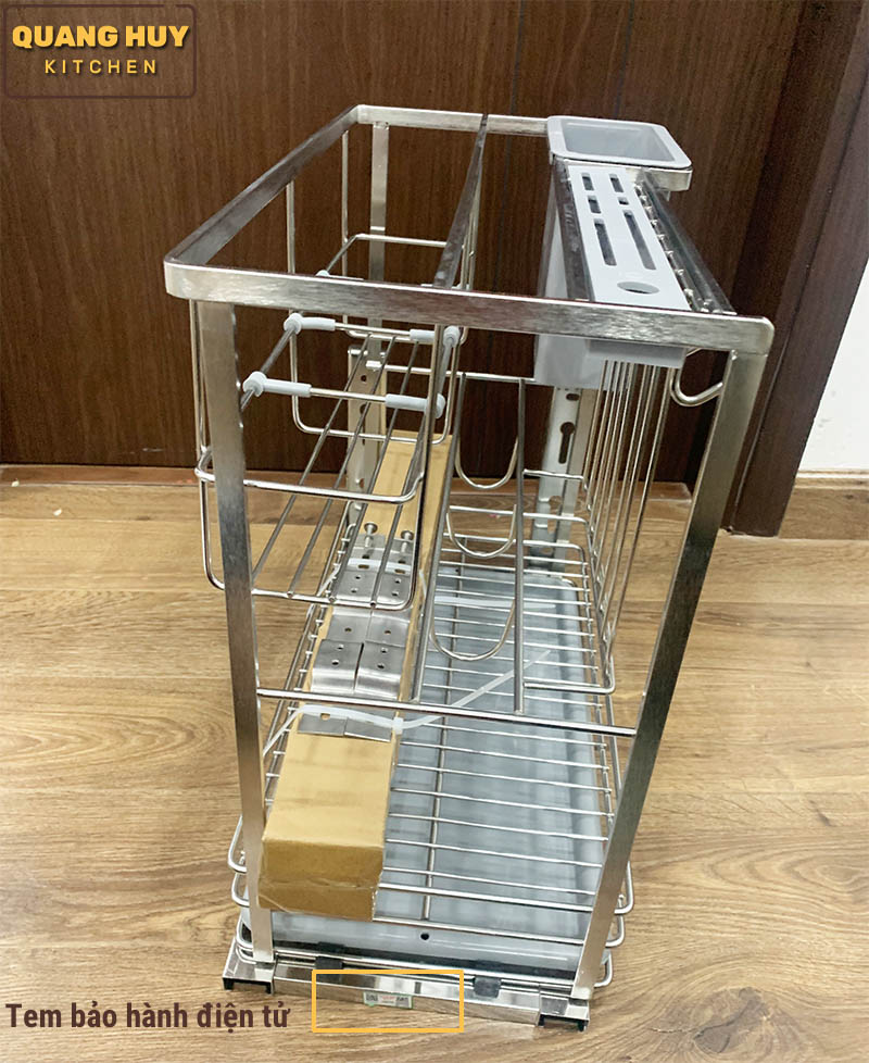 Tem bảo hành điện tử dán ở giá dao thớt. Quý khách hàng nhận sản phẩm quét mã vạch và kích hoạt tem bảo hành