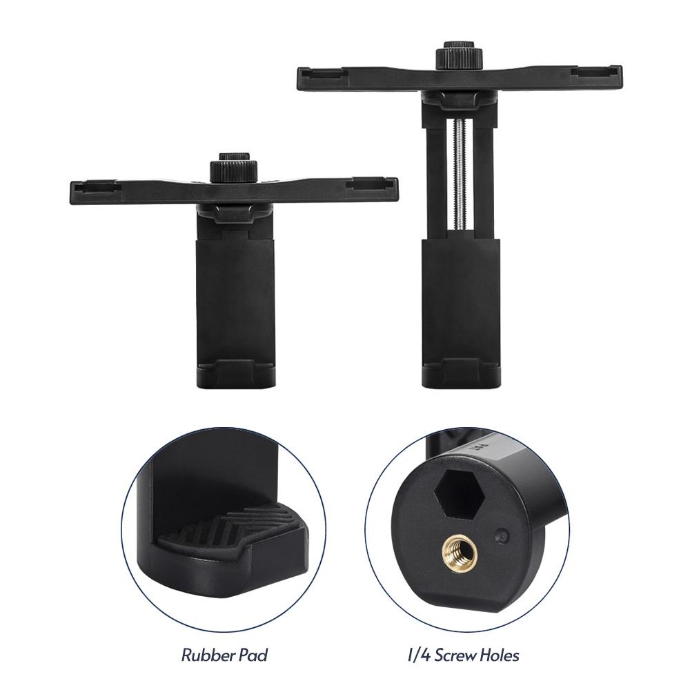 Feature: Multifunctional phone holder, made of ABS material, lightweight and durable. Phone clip extended range is 6cm-11.5cm, compatible with most of smartphones on the market. Soft rubber pads cover the contact parts of phone and
