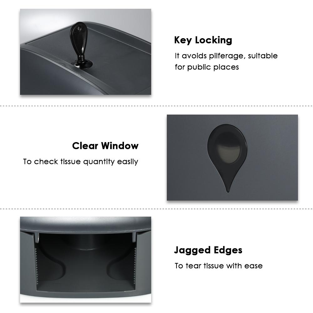 High Capacity: this single jumbo roll tissue dispenser can holds up to 9'' diameter tissue rolls(with over 2.5'' diameter core).