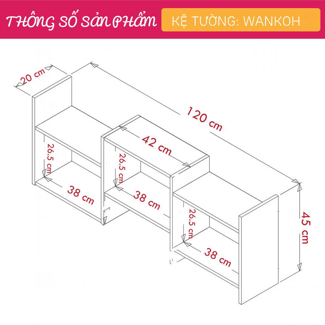 - Kích thước: Dài 120cm x Rộng 20cm x Cao 45cm