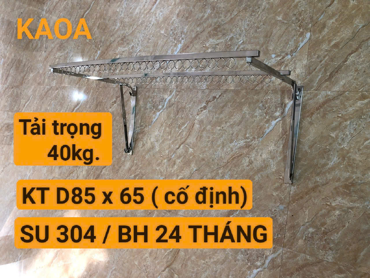 CTY CP SX INOX KAOA chuyên thiết kế .tư vấn và sx các sp về chất liệu inox . Cảm ơn quý khách hàng đã ghé thăm và quan tâm sp .KAOA luôn luôn cố gắng đảm bảo chất lượng sp để đem lại những trải nghiệm cũng như sự tin dùng sp của mỗi khách hàng ️️️️️ SP GIÀN PHƠI CAO CẤP GẤP GỌN THẾ HỆ MỚI ️️️️️ khác hẳn với các loại giàn phơi cồng kềnh mất diện tích có thể lật đổ bất kỳ khi gập gió và bão. SP GIÀN PHƠI CAO CẤP GẤP GỌN THẾ HỆ MỚI KAOA giải pháp tối ưu cho không gian ngôi nhà tiếp kiệm tối đa diện tích không gian mang lại sự sang trọng và tinh tế, hiện đại. Thanh phơi quần áo cao cấp gấp gọn KAOA mang lại sự tiện lợi và thoải mái cho người dùng đồng thời cũng là một món đồ trang trí tinh tế trong không gian sống của bạn, cùng với sự thiết kế đặc biệt giúp bạn có thể lắp đặt ở bất kỳ vị trí nào trong ngôi nhà từ ban công kể cả lối ra vào hoặc cạnh khu vực cửa sổ và cửa ra vào với thao tác gấp gọn nhẹ nhàng theo chiều gập xuống và Giữ nguyên trạng thái cố định khi phơi quần áo trong trường hợp gập gió bão ☆☆☆☆☆ ƯU ĐIỂM 1./ Thiết kế thông minh với chân chống tự khóa 2./ tải trọng lên đến 40kg 3./ Với chất liệu 100% inox 304 không han rỉ 4./ Thiết kế cải tiến có thể rễ dàng gấp gọn theo phương thẳng đứng chỉ với 2s 5./ Đáp ứng mọi vị trí lắp đặt 6./ Giữ nguyên trạng thái cố định khi phơi quần áo trong trường hợp gập gió bão 7./ Không cần di chuyển hay bê vác chỉ với thác tác gấp gọn nhẹ nhàng 8./ Lựa chọn được nhiều các vị trí lắp đặt có ánh nắng và gió ☆☆☆☆☆ THÔNG SỐ KỸ THUẬT 1./ Thanh móc áo được sử dụng hộp vuông 20mm và được bo tròn các đầu đem lại sự sang trọng và an toàn cho sp 2./ bản cố định tường được sử dụng hộp 40 x 10 ( mm) 3./ giá phơi được liên kết bằng bu lông inox CÁCH SỬ DỤNG 1./ Chọn vị trí ,chiều cao phù hợp để lắp đặt khi sử dụng phơi đồ B1>> Lắp ghép hoàn chỉnh bộ giàn phơi với bu lông đi kèm B2>> Áp bộ giàn phơi vào bề mặt tường lấy dấu và cố định 1 chân với phương thẳng đứng B3>> Tiến hành đặt chân còn lại với bề mặt cân bằng so với chân được cố định trước đó LƯU Ý TẠO ĐỘ KHE HỞ SONG SONG GIỮA CHÂN CHỐNG VÀ THANH CHỊU LỰC ( vui lòng xem trên ảnh) --- SP ĐƯỢC BẢO HÀNH 24 THÁNG SỬ DỤNG --- CAM KẾT BẢO HÀNH NHƯ SAU. SP không đúng kích thước. SP không đúng chất liệu inox 304. SP bị hư hại do chưa đạt yêu cầu về mối hàn dẫn đến bung .gẫy được đổi mới hoàn toàn trong thời gian bảo hành và không có bất kỳ phí phát sinh nào trong thời gian được bảo hành sp