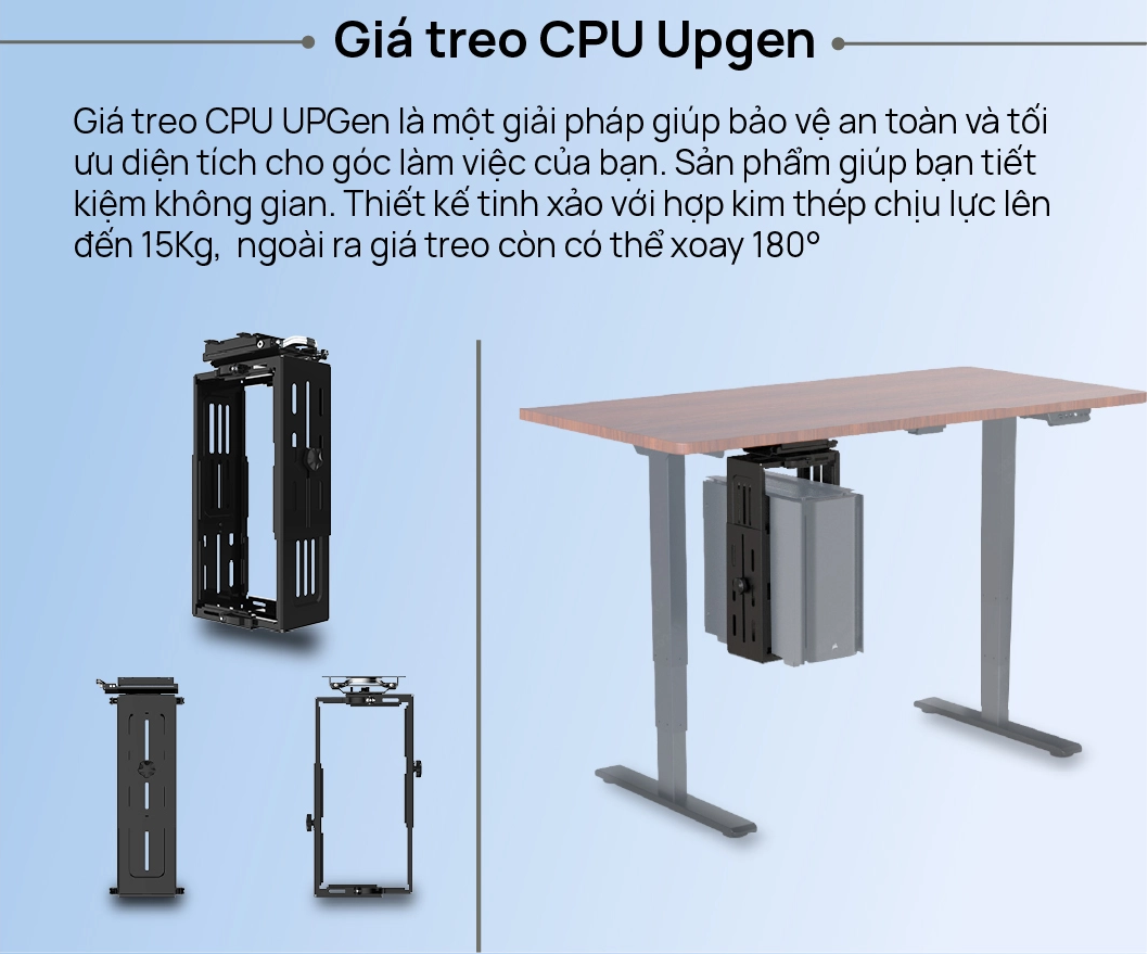 Giá treo Case Computers UPGEN là một giải pháp bảo vệ an toàn và tối ưu diện tích cho góc làm việc với tính năng có thể điều cỉnh xoay lên đến 180 độ linh hoạt cho người dùng ở bất kỳ góc độ nào