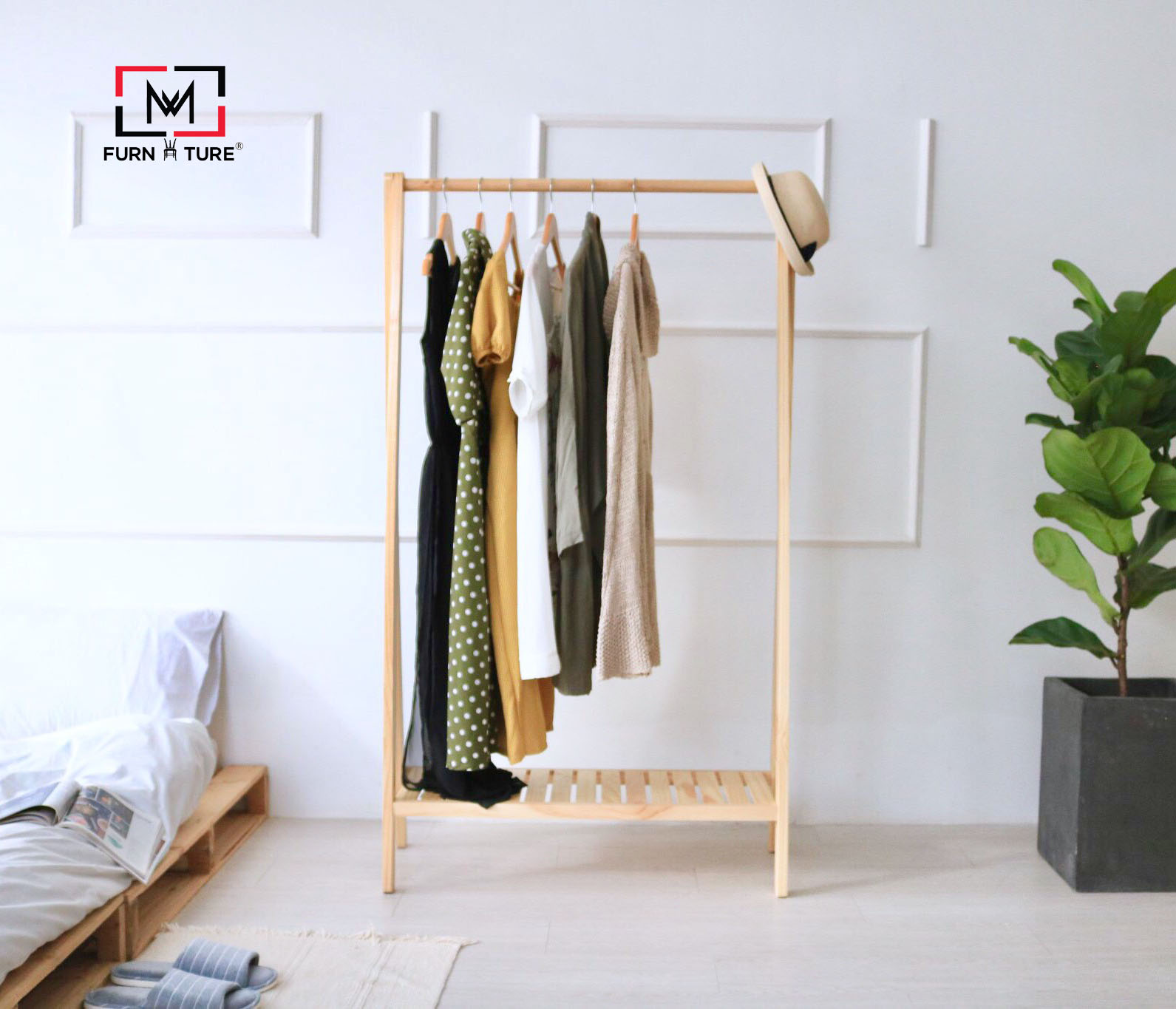 GIÁ TREO QUẦN ÁO THANH ĐƠN - SINGLE HANGER 1. THÔNG TIN SẢN PHẨM: - Kích thước: 86 x 44 x 125 cm (Dài x Rộng x Cao). - Chất liệu: Gỗ thông nhập khẩu