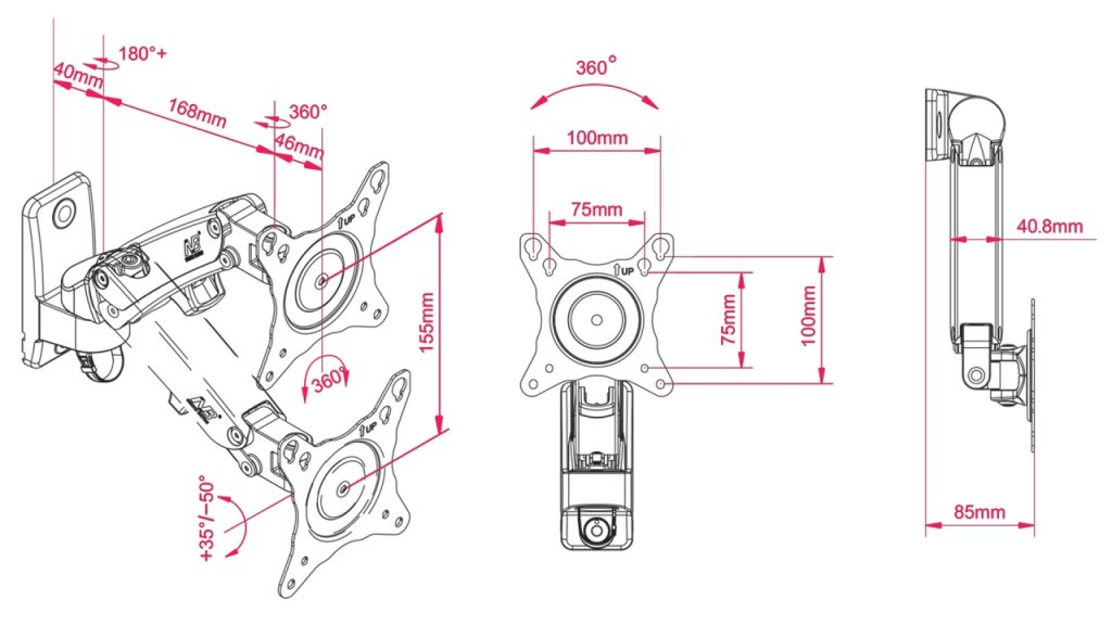 Khung treo tường F120 là Sản phẩm có phần cánh tay mở rộng được xây dựng bằng vật liệu hợp kim nhôm với vẻ bề ngoài mịn màng. Quản lý cáp tích hợp đẹp được thiết kế mang lại sự sạch sẽ và tránh lộn xộn