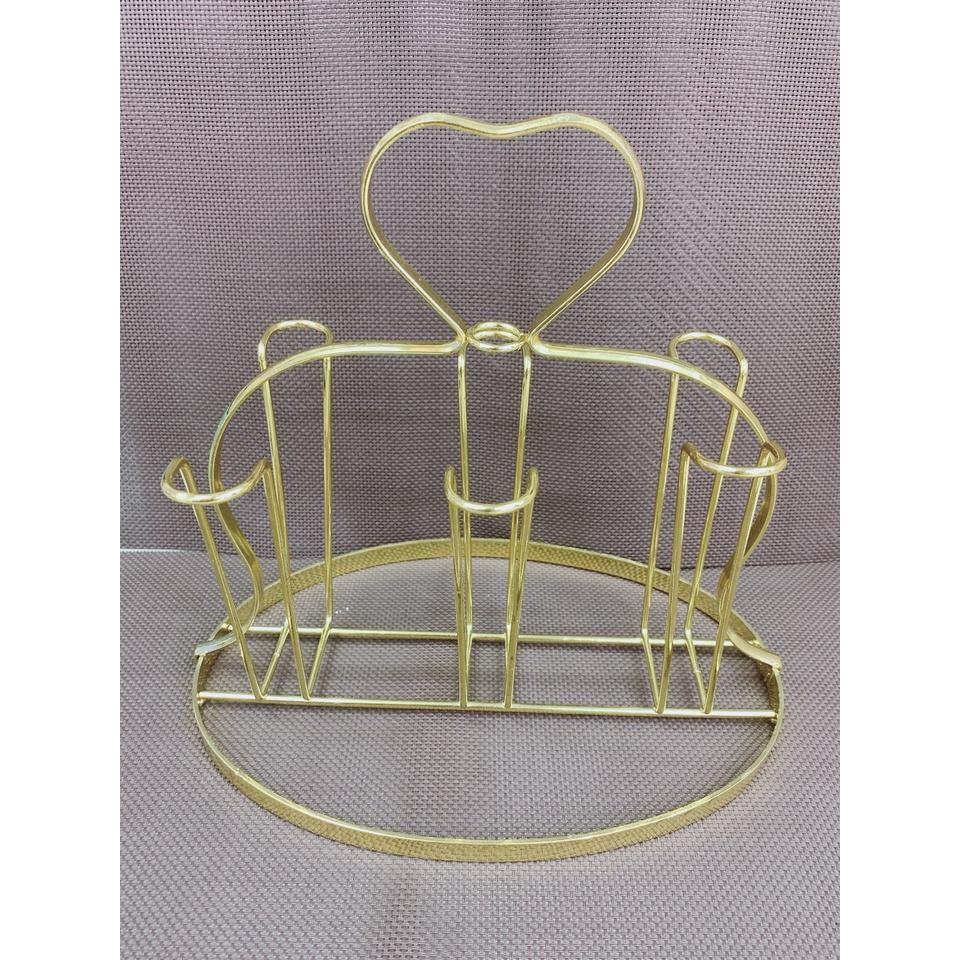 Giá úp cốc cao cấp màu vàng tay cầm trái tim - Chất liệu Inox vàng gương -Kích thước: 16*25.2*24cm - Chiều dài thanh giữ cốc là 15cm, phù hợp với các loại cốc ,