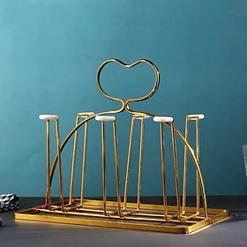 Giá úp ly, kệ úp cốc, chất liệu hợp kim mạ vàng sang trọng, Kèm khay hứng nước