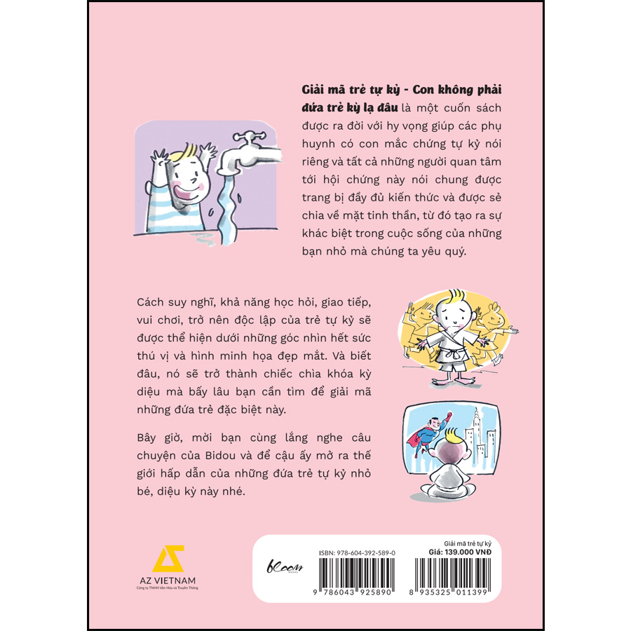 “Giải mã trẻ tự kỷ” tổng hợp các tình huống xảy ra hàng ngày và hướng giải quyết, đồng thời đề xuất các bài tập thực hành nhằm nâng cao năng lực phát triển của trẻ. Cuốn sách trang bị cho các bậc phụ huynh để đương đầu với thách thức trong quá trình nuôi dạy những đứa trẻ đặc biệt. Thông qua hành trình giải mã “cậu bé Bidou”, chúng ta không chỉ hiểu hơn về thế giới của người tự kỷ mà còn cho trẻ một cơ hội để học hỏi, giao tiếp, chơi với những đứa trẻ khác, trở nên độc lập và hợp tác với những người xung quanh.