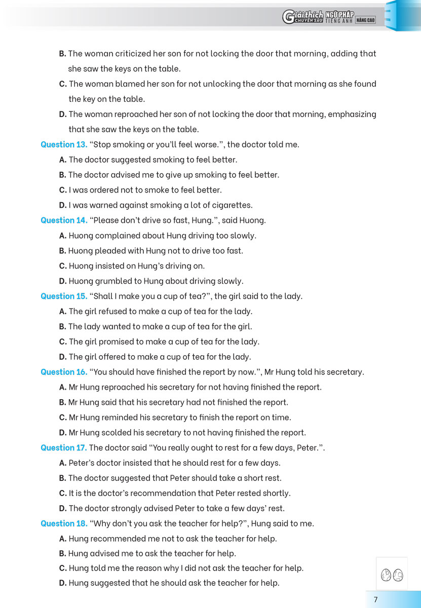 Hy vọng rằng bộ sách Giải thích chuyên sâu bài tập nâng cao Ngữ pháp Tiếng anh sẽ là một tài liệu ôn thi hiệu quả cho các em!