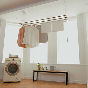 Giàn phơi quần áo hoạt động dựa vào cáp truyền động được thiết kế đặc biệt, thông qua kết cấu phanh hãm giúp bạn dễ dàng thao tác nâng lên, hạ xuống giàn phơi một cách nhanh chóng và dễ dàng.