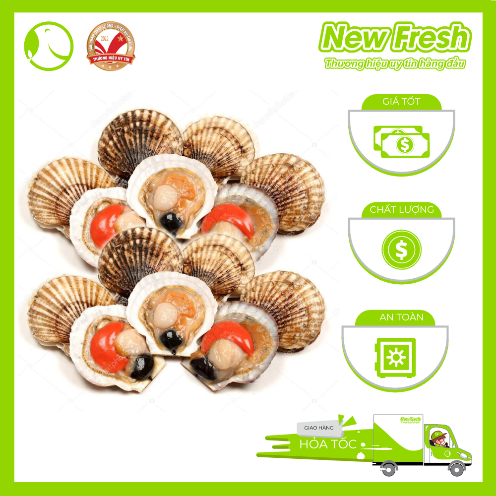 Với sản phẩm tươi sống, trọng lượng thực tế có thể chênh lệch khoảng 10%. - Xuất xứ: Japan - Nhãn hiệu: New Fresh - Quy cách: 9-11 Con/Kg - Bảo quản: Đông (-18 độ C) - Hạn