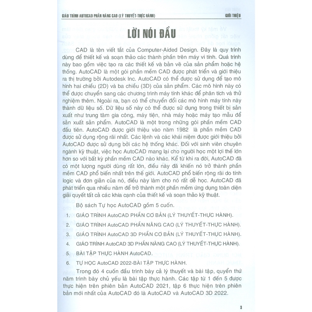 "AutoCad là một trong những phần mềm đã và đang giảng dạy tại nhiều trường kỹ thuật. Giáo trình AutoCad này được cập nhật bao gồm các bản phát hành AutoCad mới nhất, giúp người học có những kiến thức cơ bản về phần mềm phổ biến, những kiến thức cơ bản về về thiết lập dự án và tạo bản vẽ đơn giản cho đến tạo mô hình 3D