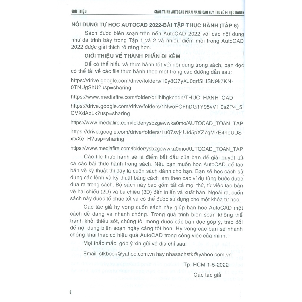 Nội dung Giáo trình AutoCad Phần Nâng Cao với 13 chương và phần phụ lục giới thiệu Bài tập thực hành: Bài tập thực hành nâng cao; Sử dụng công cụ khối và chỉnh sửa khối; Tạo các kiểu văn bản, kiểu bảng và tạo công thức trong bảng; Các kiểu kích thước và Multileder; Plot Styles, Annotatative và Export; Tạo các file mẫu và tùy chỉnh giao diện; Các ràng buộc tham số; Các khối động; Tham chiếu bên ngoài; Các bộ S"
