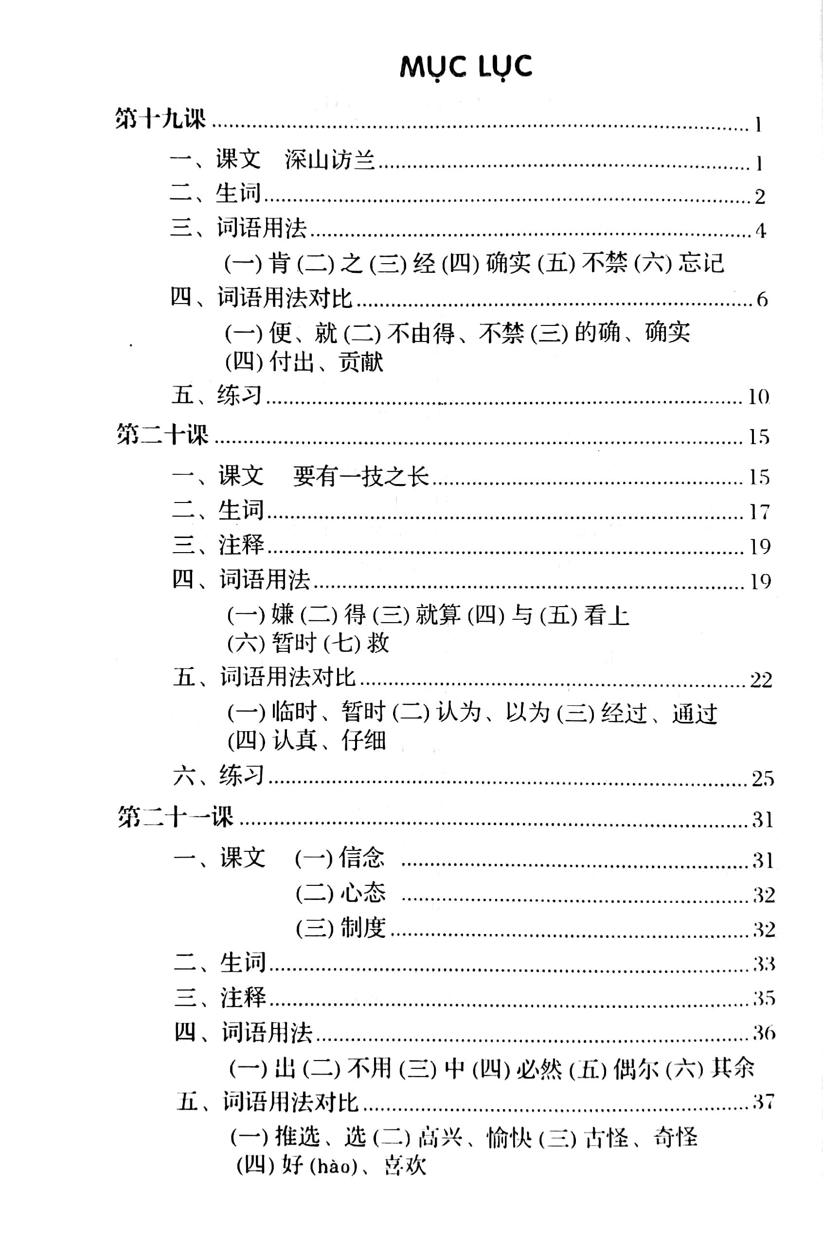 4. So sánh cách dùng từ ngữ: Đến giai đoạn trung cấp, người học tiếng Hán tự nhiên sẽ cảm thấy khó khăn khi dùng từ đồng nghĩa và từ cận nghĩa, phần này được biên soạn chính là nhằm vào điểm này. Nếu nắm vững được thì đây sẽ là nền tảng vững chắc cho người học khi học lên giai đoạn cao hơn.