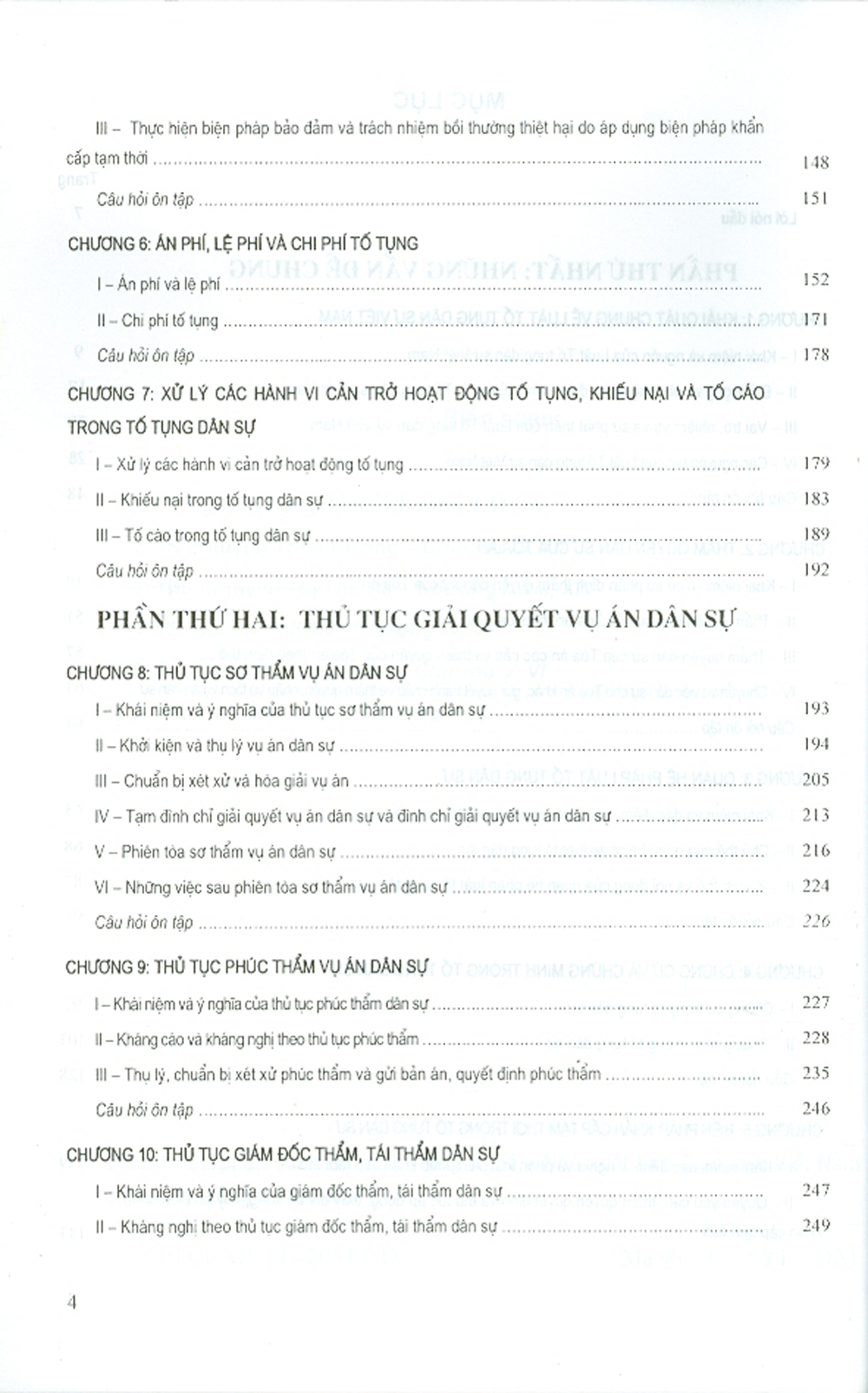 Trình bày những vấn đề chung về luật tố tụng dân sự. Giới thiệu các thủ tục giải quyết vụ án dân sự; Việc dân sự; Vụ việc dân sự có yếu tố nước ngoài và tương trợ tư pháp trong tố tụng dân sự