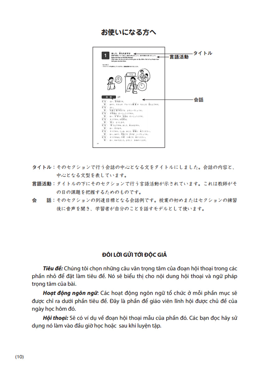 - Giới thiệu tóm tắt tác phẩm: Giáo trình được biên soạn nhằm giúp người học giao tiếp bằng tiếng Nhật tốt hơn trong các hoạt động xã hội. Các tình huống học tập trong