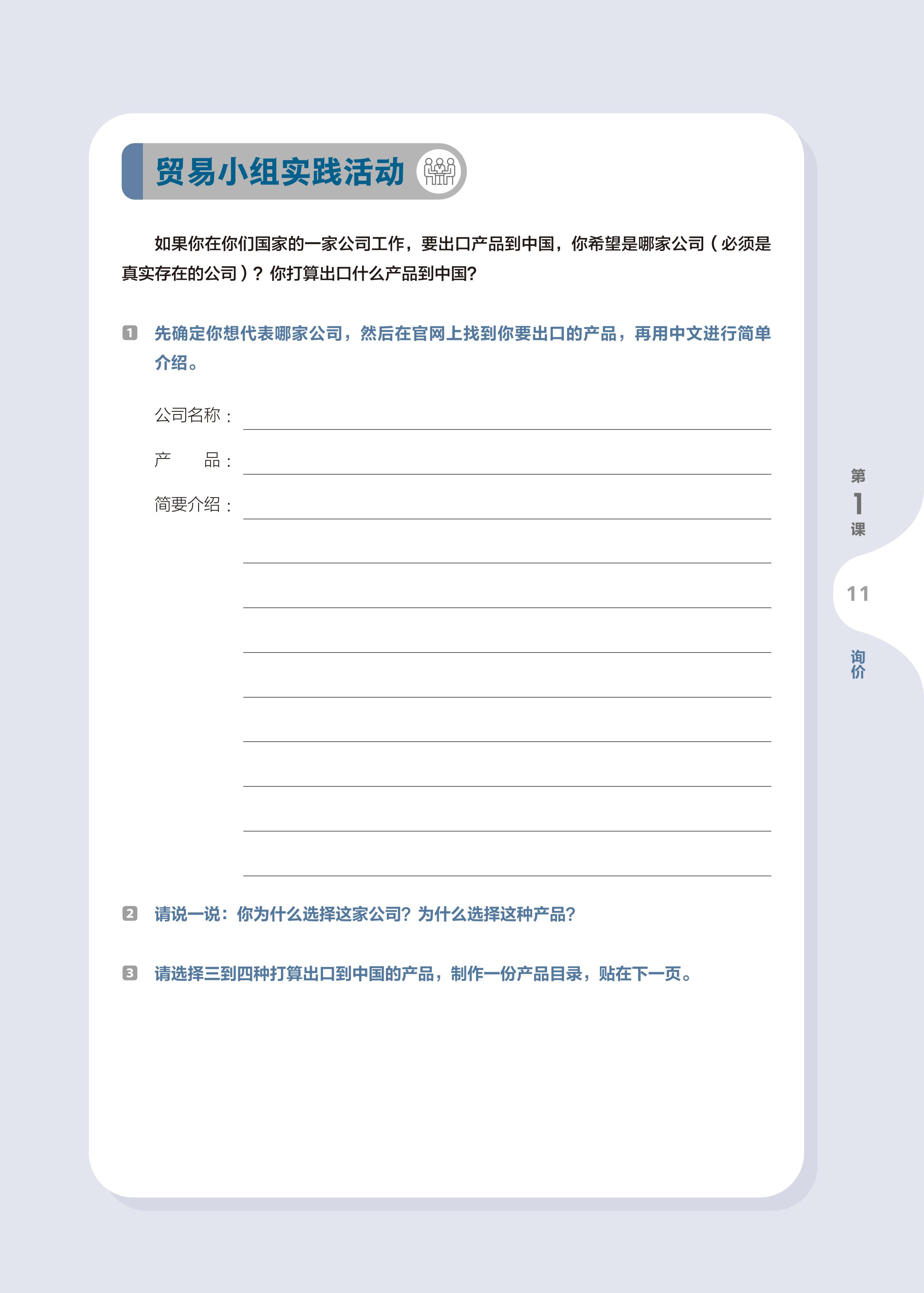 • Hoạt động thực hành nhóm: Thiết kế các hoạt động nói theo nhóm dựa trên chủ đề mỗi bài và vượt ra ngoài nội dung bài khóa. Người học thông qua phân công hợp tác, giúp đỡ lẫn nhau và thảo luận tự do, tăng cường ghi nhớ từ ngữ, mẫu câu trọng điểm và cách diễn đạt thường dùng, nâng cao khả năng giao tiếp khẩu ngữ.