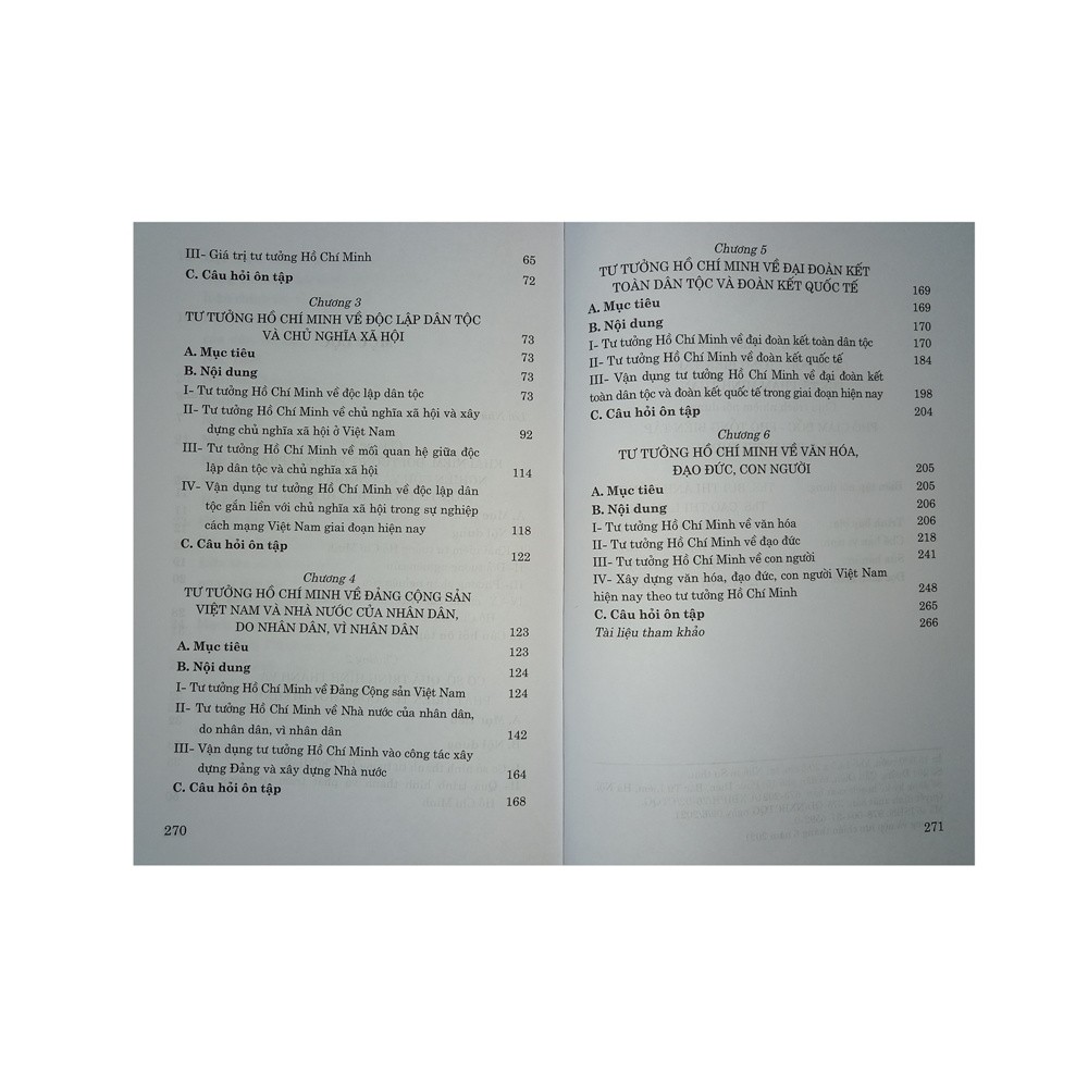Các chương còn lại gồm các nội dung: Tư tưởng Hồ Chí Minh về độc lập dân tộc và chủ nghĩa xã hội; Tư tưởng Hồ Chí Minh về Đảng Cộng sản
