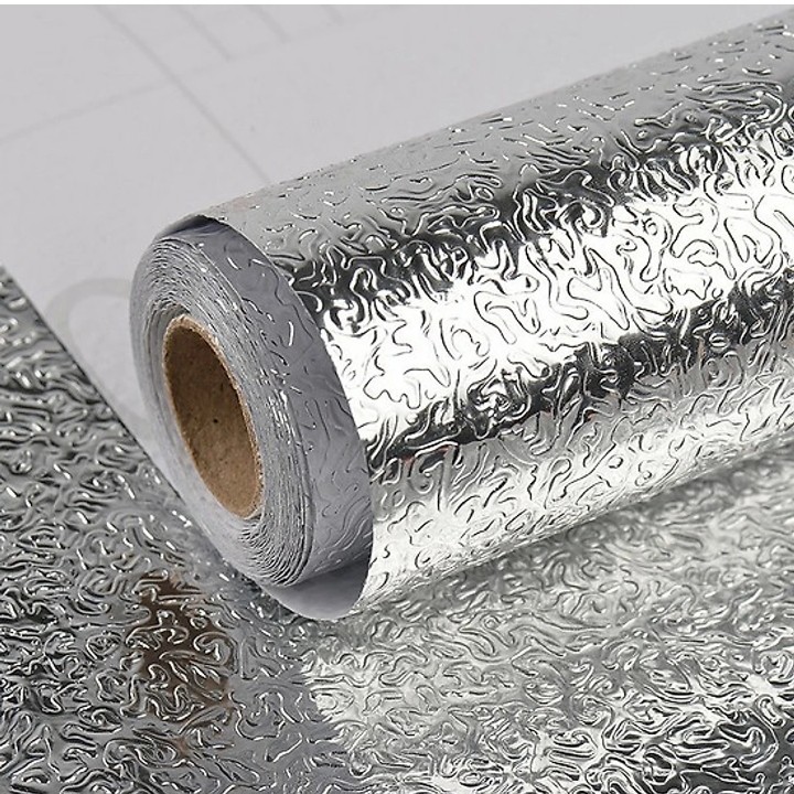 Giấy bạc dán tường bếp chống dầu mỡ cuộn 3m, giấy bạt cách nhiệt chống cháy dán tường tủ lạnh bếp
