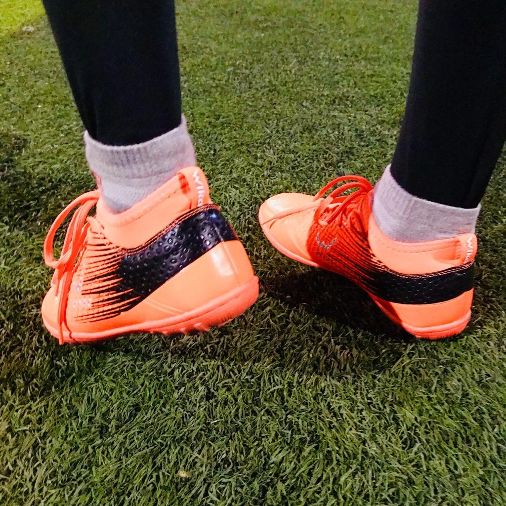 Form ôm chân, độ bền cao, đế mềm - dẻo - đinh dăm bám sân giúp bé thoải mái vận động.