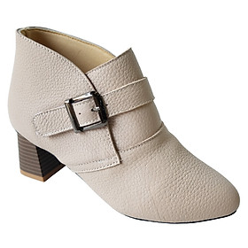 ROSATA - thương hiệu giày thời trang nữ cao cấp THUẦN VIỆT NHƯNG CHẤT LƯỢNG QUỐC TẾ ---- Giày bốt nữ cổ ngắn màu trắng kem 4p RO308 ROSATA tại BCASHOP khóa nút tiện lợi,