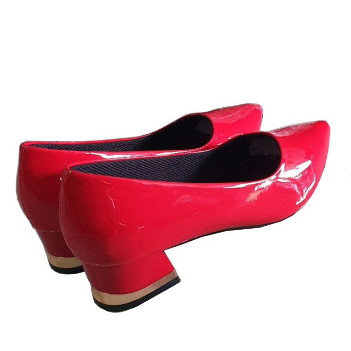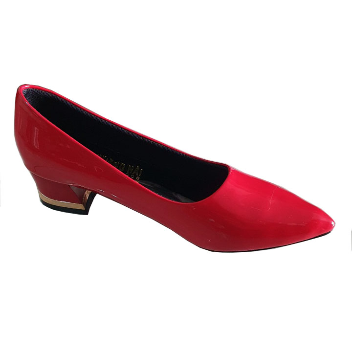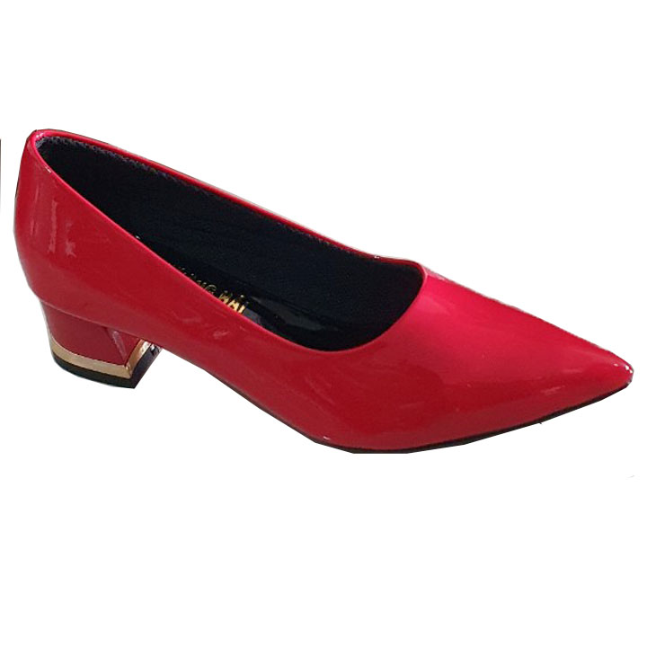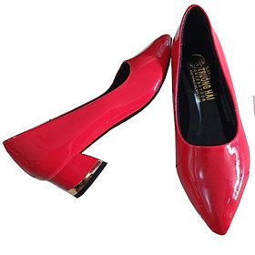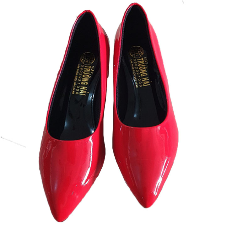 Giày cao gót đế vuông da bóng đỏ Trường Hải