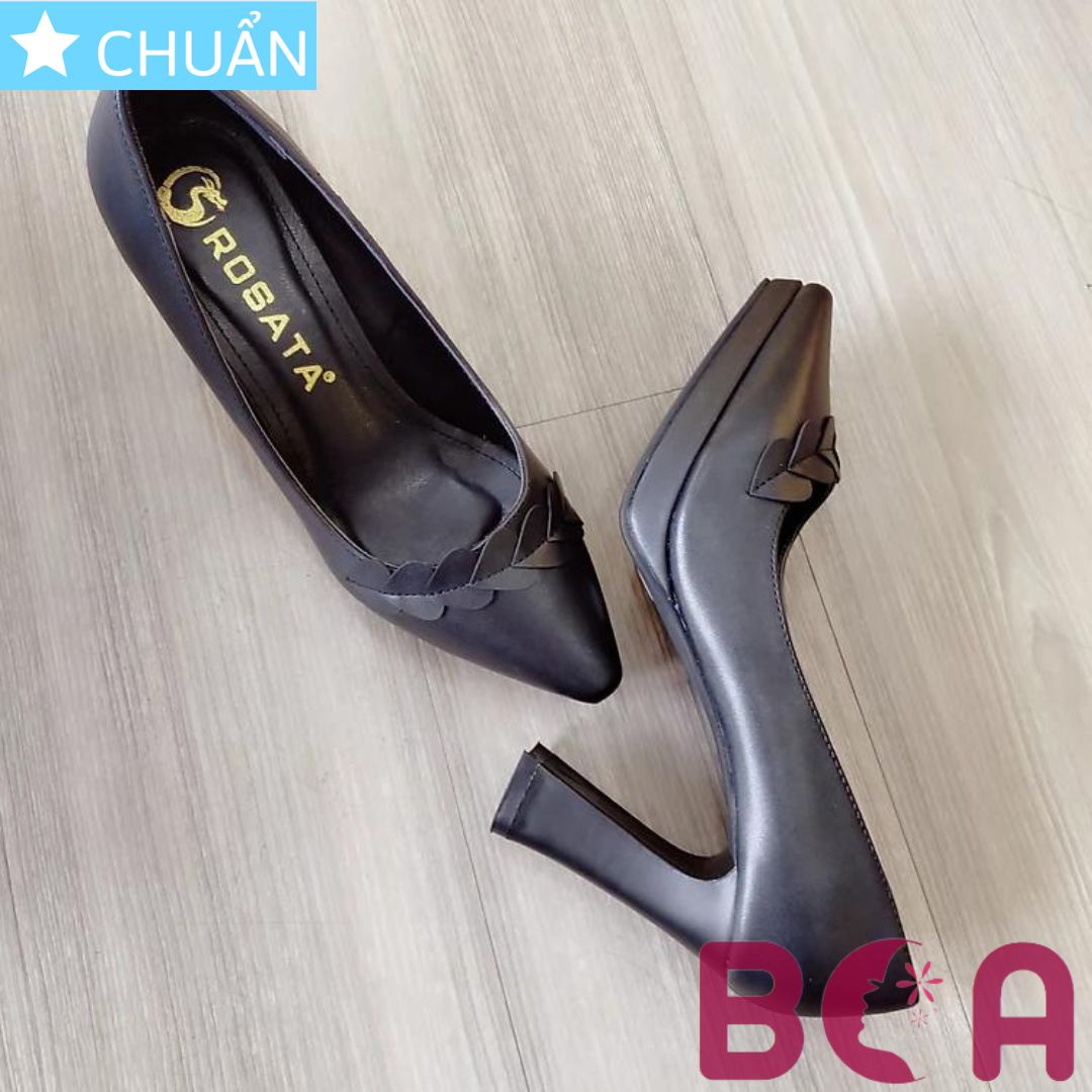 ✨Giày cao gót nữ màu đen 8p RO441 ROSATA tại BCASHOP bít mũi, có nhấn dây trái tim lạ mắt, siêu dễ thương và thời trang