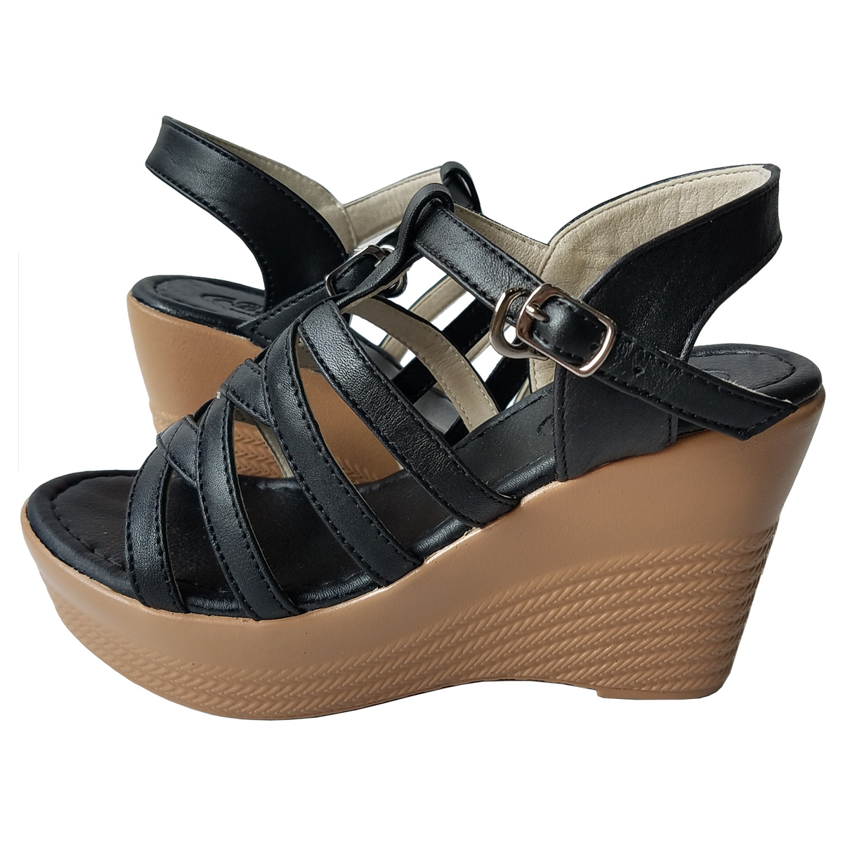Dép xăng đan nữ đế vuông cao 5cm da bò thật