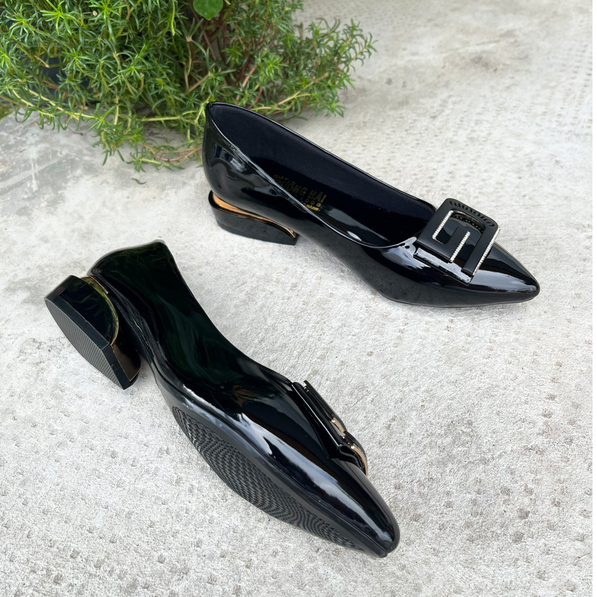 Giày cao gót da bóng đen 3cm Trường Hải