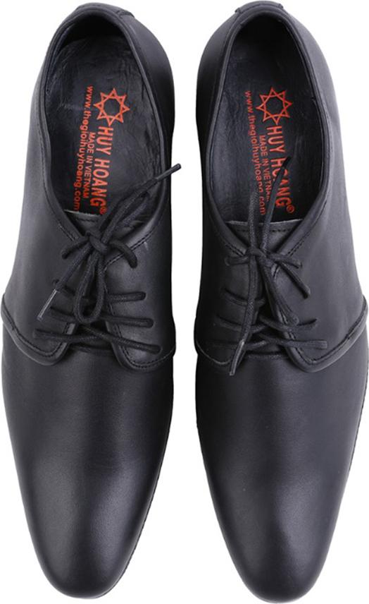 Giày tăng chiều cao Huy Hoàng da bò cột dây màu đen 7723