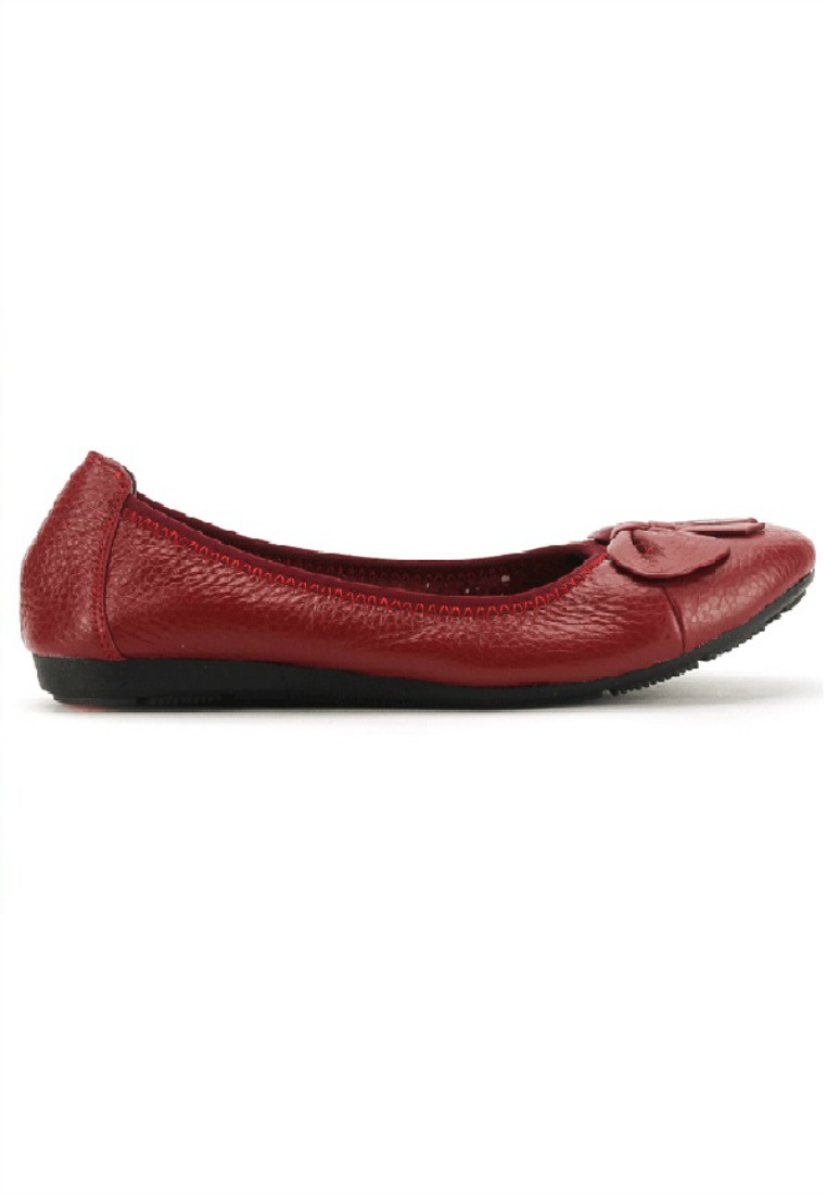 Giày nữ búp bê Huy Hoàng da bò màu đỏ đô 7909