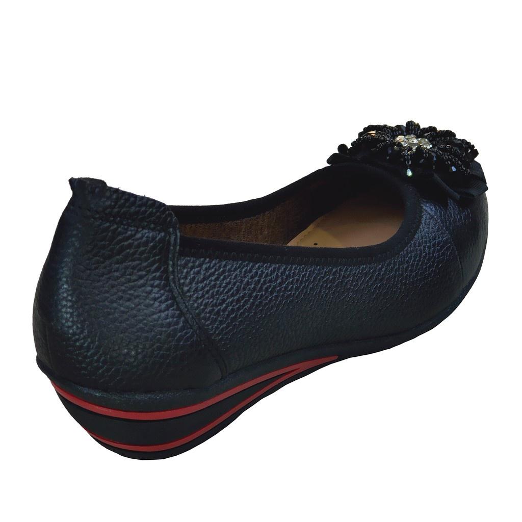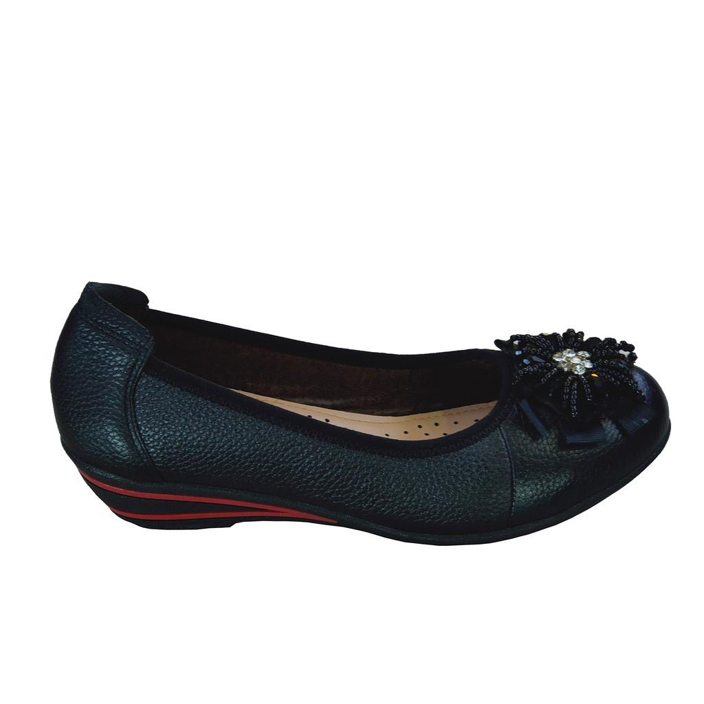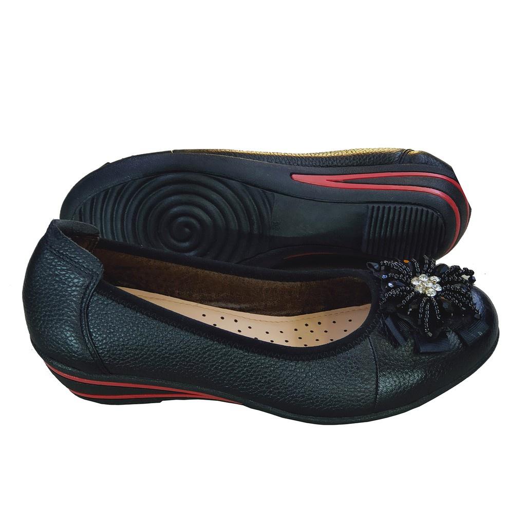 Giày đế xuồng 3cm đính nơ đen Trường Hải da bò thật