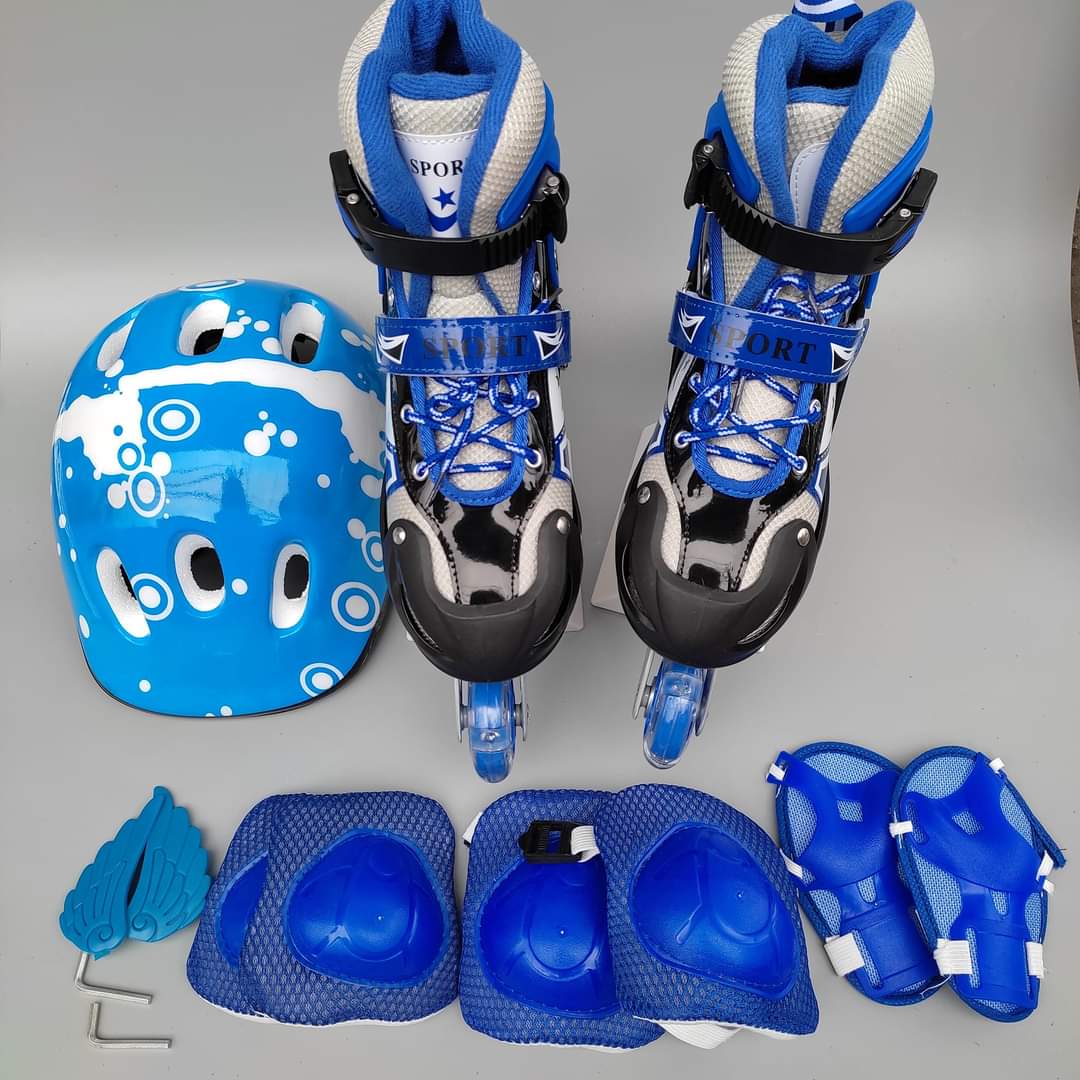 – Combo giày patin bao gồm: 1 đôi giày patin, 1 mũ bảo hộ, 1 bộ bảo hộ chân tay 6 miếng(không kèm túi)