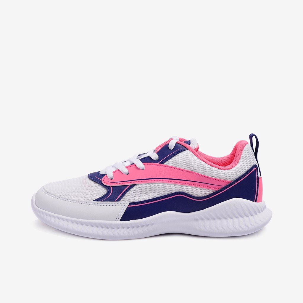 Đế giày - lựa chọn chất liệu Phylon làm nên đế giày thể thao cho các chị em. Vì tính chất nổi bật của vật liệu này là trọng lượng siêu nhẹ (nặng chỉ 300g/chiếc) và độ đàn hồi cao. Nhờ đó, phần lớn khách hàng sử dụng sản phẩm ngay từ lần đầu tiên đều có cảm giác đôi chân “nhẹ như bay”, bước đi thoải mái và thỏa thích vận động ở mọi tư thế theo cách riêng mà không lo đau mỏi chân. - Mặt đế thiết kế thêm những rãnh chống trượt, bố trí dày đặc nhằm tăng độ ma sát. Qua đó giúp người mang vận động thoải mái, bước đi vững chắc và bảo đảm an toàn tối đa, nhất là khi di chuyển trên những địa hình trơn nhẵn hoặc thời tiết ẩm ướt. Thân giày - Thân giày áp dụng công nghệ đan 2 sợi độc đáo. Nhờ vậy, sản phẩm vô cùng nhẹ và thoáng, mang lại cảm giác thoải mái nhất có thể cho người sử dụng. Không những vậy, công nghệ đan 2 sợi còn bảo đảm độ bền chặt của từng chi tiết như cổ giày, quai giày, dây giày… giữ đúng form dáng lâu dài, ít biến dạng hoặc giãn sau một thời gian sử dụng. - Bên cạnh đó, thiết kế thân giày được cải tiến mạnh mẽ bằng chất liệu vải canva, bảo đảm cảm giác thoải mái nhất có thể và hạn chế nóng bức, bí bách nếu phải mang giày trong thời gian dài. -