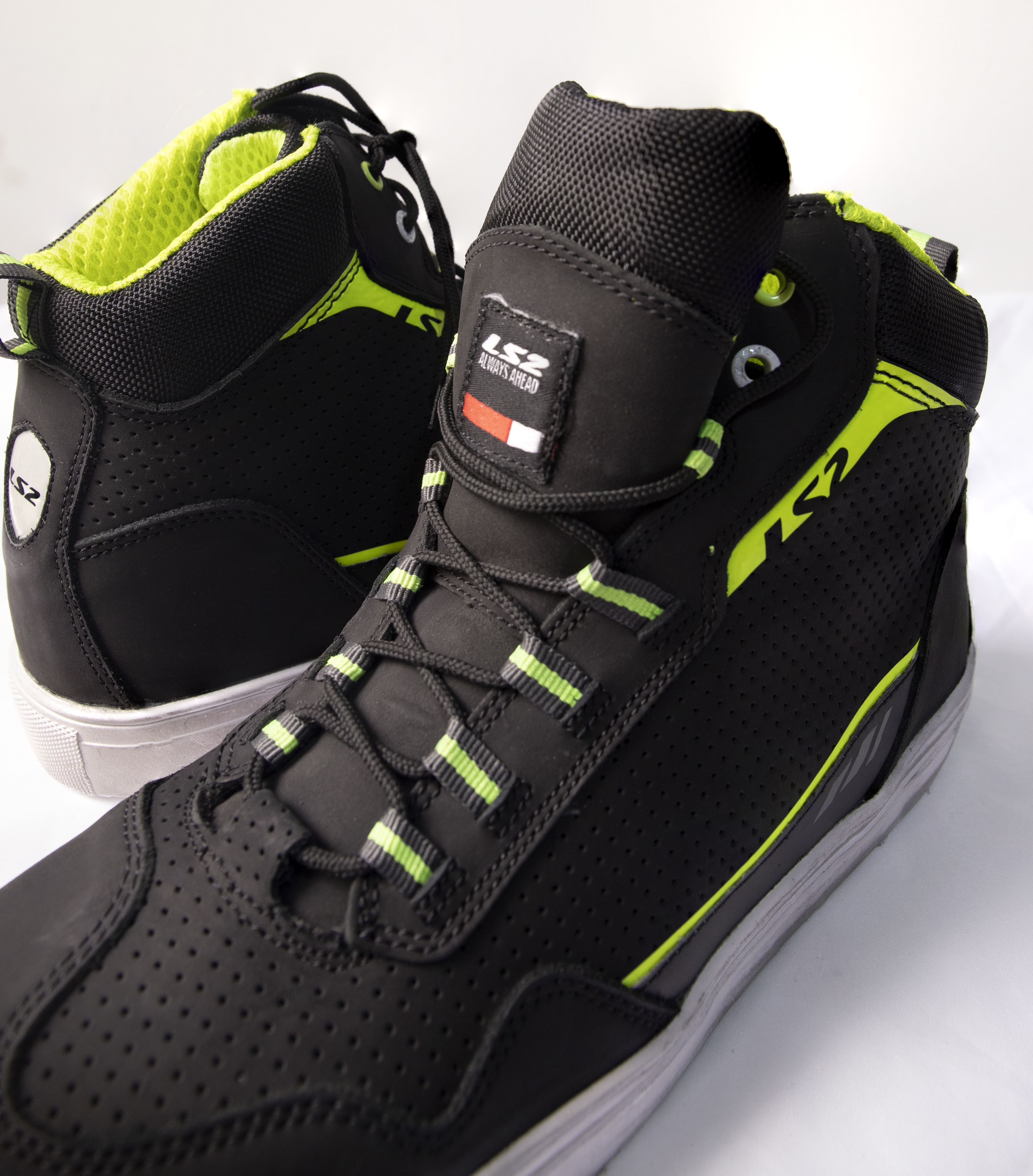 Giày bảo hộ moto LS2 Zoe Man hiện đang được công ty BBI phân phối với 2 màu sắc: Black H-V Yellow và Black Red, size từ 42-44.