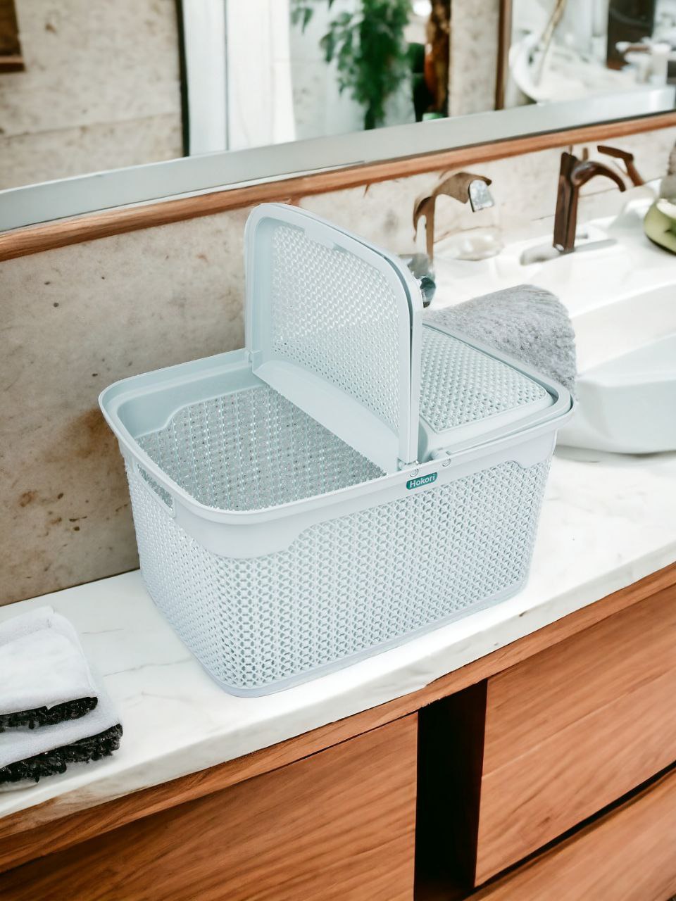 - trắng ghi Chất liệu: Nhựa PP nguyên sinh cao cấp bền và đẹp Thông Tin sản phẩm Làn nắp H.O.K.O.R.I 2609 là vật dụng không thể thiếu cho mẹ bầu để đựng những vật dụng cần thiết như quần áo, vật dụng vệ sinh, và đồ đi sinh của bé. Với kích thước lớn và quai xách tiện lợi, làn đựng đồ này giúp mẹ bầu dễ dàng di chuyển mà không lo bị rơi đồ. Thiết kế thông minh và dung tích rộng rãi đảm bảo mẹ có thể chuẩn bị đầy đủ mọi thứ, sẵn sàng cho ngày vượt cạn thành công. Đây chắc chắn không chỉ là một chiếc làn đựng đồ thông thường mà còn là một người bạn đồng hành đáng tin cậy trong mọi ngôi nhà. Ưu điểm