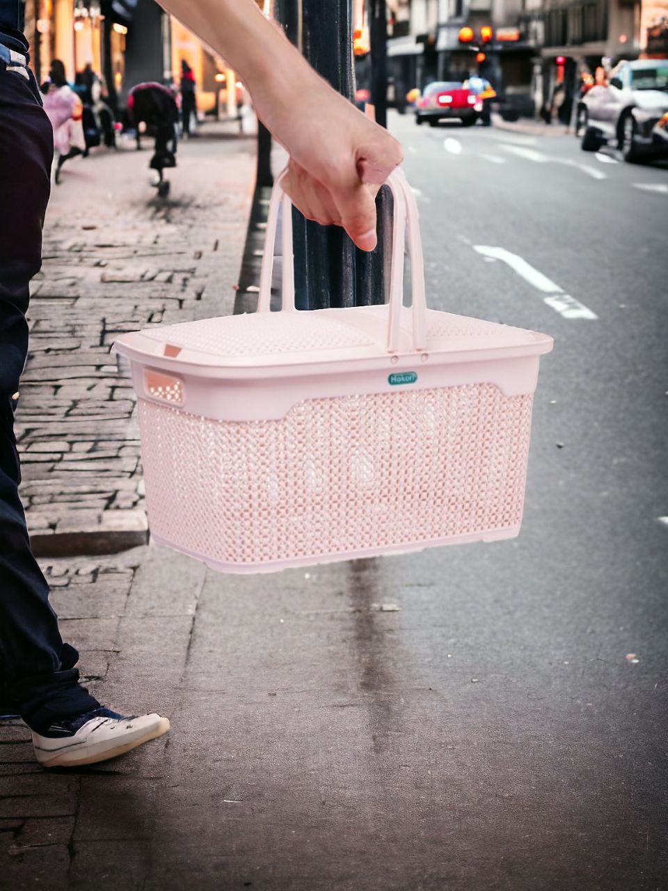 Giỏ làn đi sinh HOKORI nhựa VIỆT NHẬT cao cấp - Có quai xách, nắp đậy
