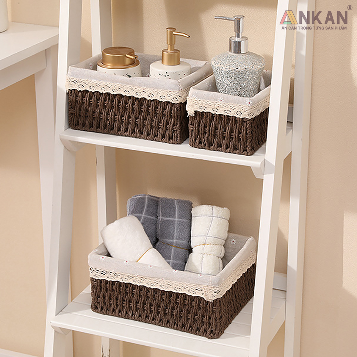 - Giỏ mây đựng đồ có thể đựng đồ trang điểm, đồ trong phòng tắm, phân loại đồ đạc ở các kệ tủ, ngăn kéo.
