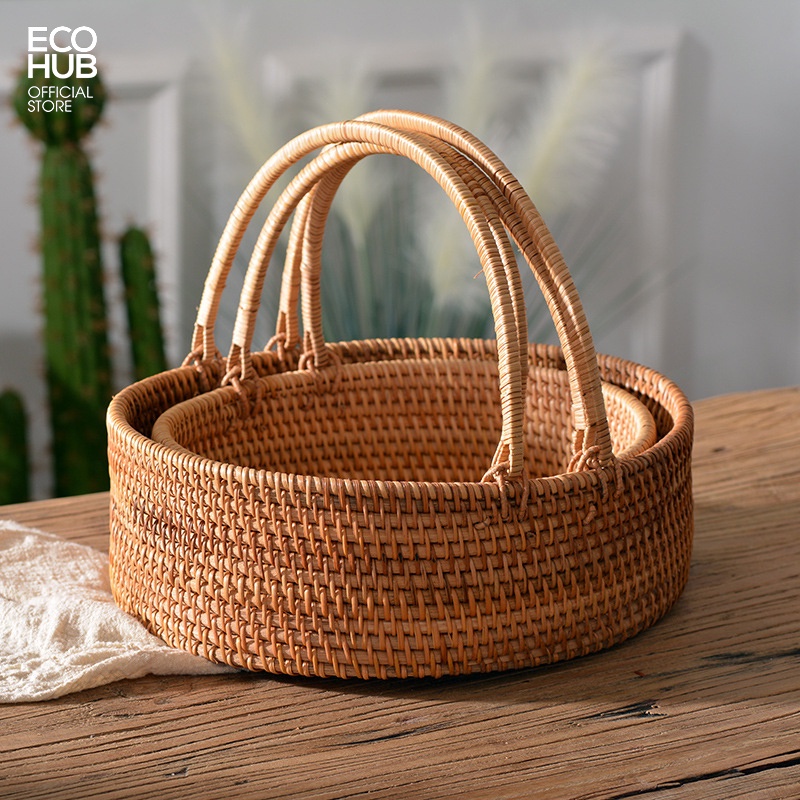 Giỏ mây ECOHUB có tay cầm đựng bánh mì, hoa quả.