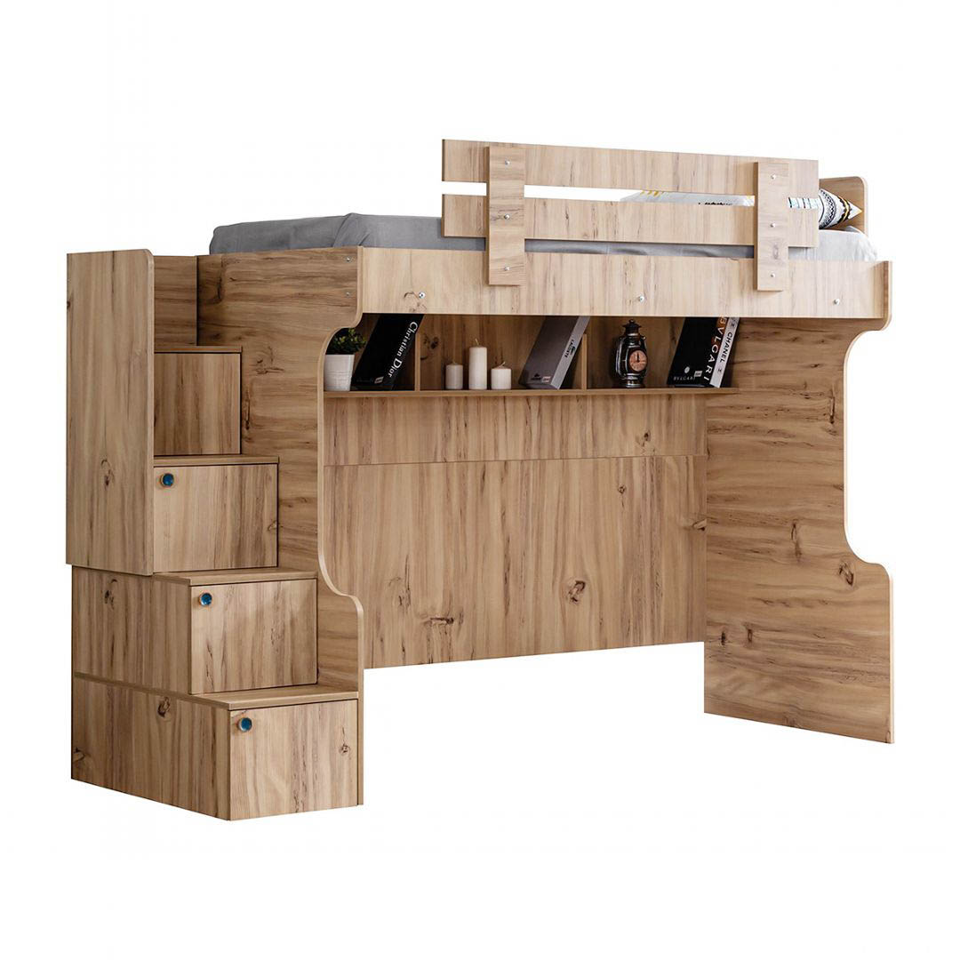 Giường tầng xuất khẩu Derry có kích thước lọt lòng giường trên/dưới là 100x193 cm, phủ bì 202x110x165 cm. Khoảng cách giữa 2 tầng là 95 cm, cầu thang bố trí bên phải. Chân trụ