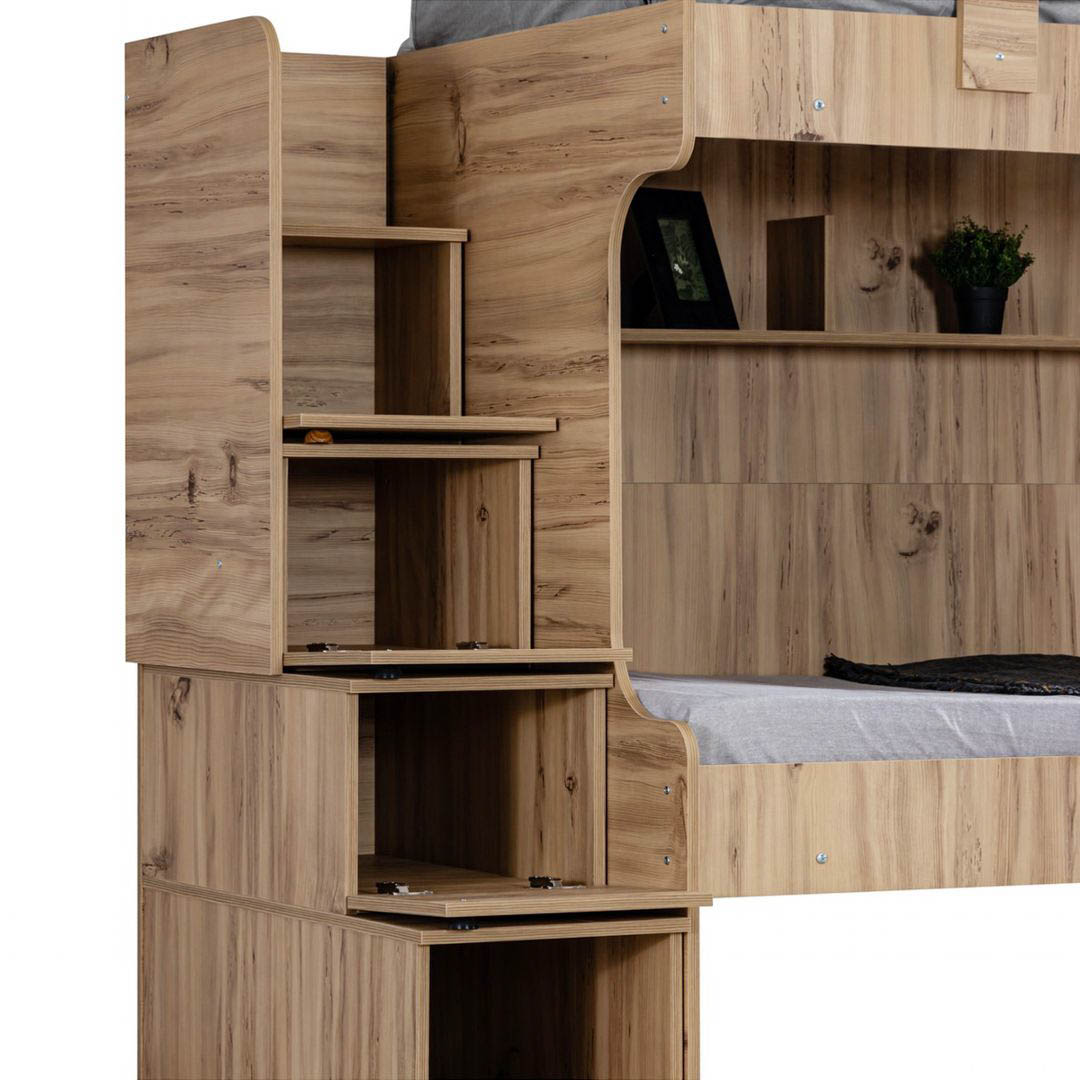Giường tầng xuất khẩu Derby có kích thước lọt lòng giường trên/dưới là 100x193 cm / 120 x 193 cm, phủ bì 206x128x178 cm. Khoảng cách giữa 2 tầng là 98 cm, cầu thang có