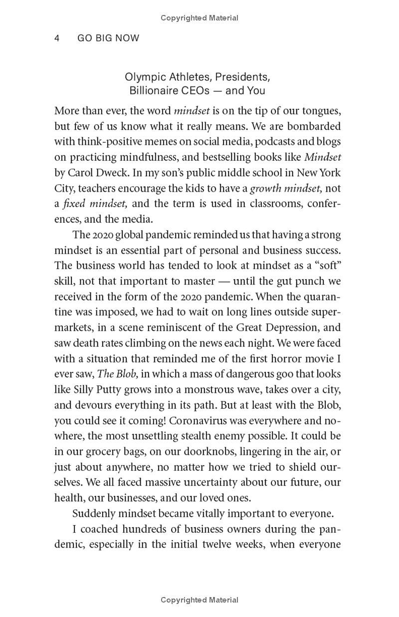 What’s the biggest challenge you face if you want to accomplish great things? It’s getting and keeping the right mindset, according to the hundreds of high achievers Julia Pimsleur has interviewed and worked with as a business coach. In Go Big Now, Pimsleur distills two decades of studying complex mindset practices into eight essential “mindset keys” that can be used by anyone to get the Go Big Mindset and achieve ambitious professional and life goals. Pimsleur shares personal stories of how she used these keys to raise venture capital and build multimillion-dollar companies, and illustrates each key with an example from a leader, CEO, or celebrity whose mindset catapulted them to success. You’ll learn to reframe perceived setbacks, replace unhelpful thoughts and limiting beliefs with empowering ones, and stay motivated to pursue your big goal, even in the face of massive hurdles. With the Go Big Mindset, you’ll boost your mental resilience and discover how to think your way to bigger, better results.