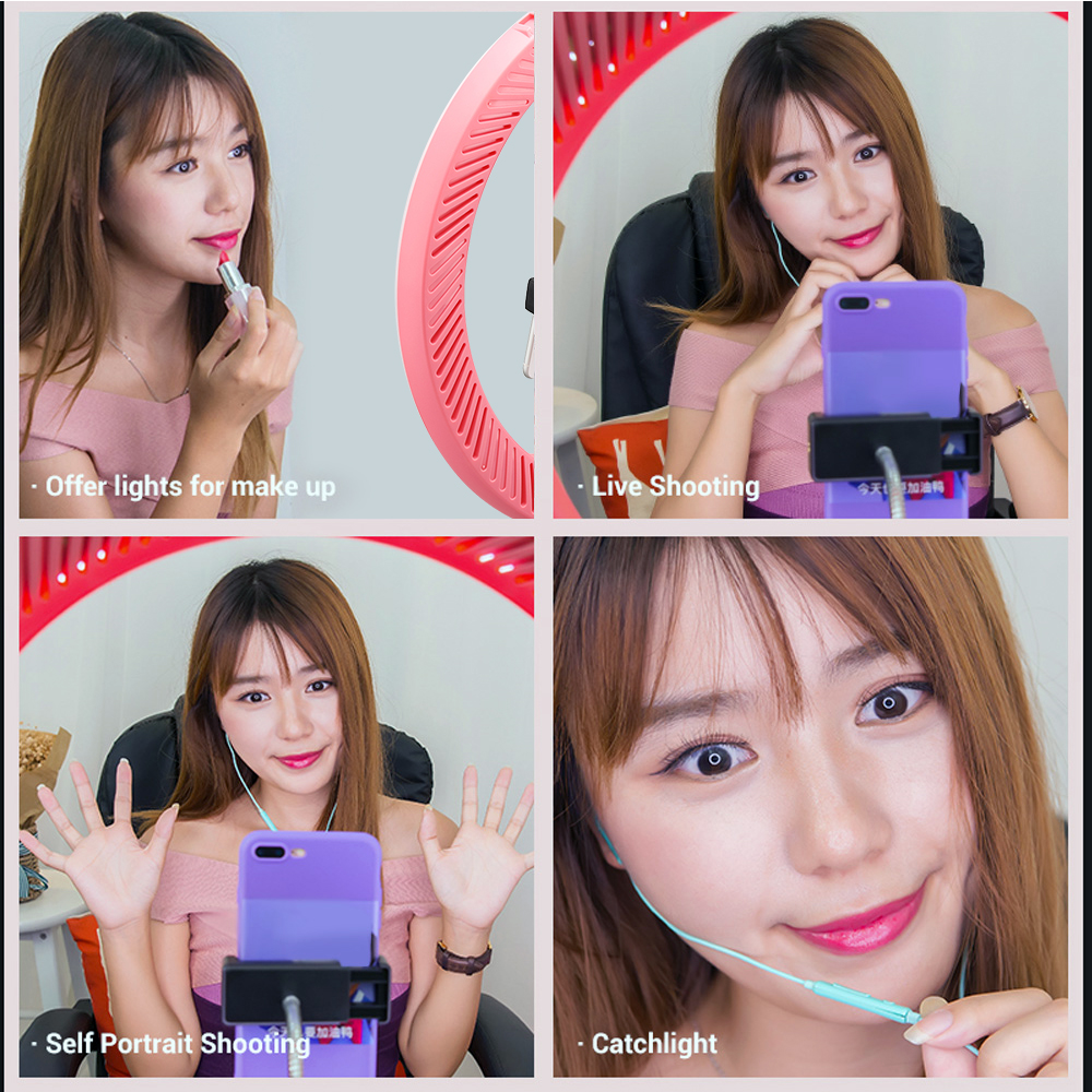 【Flexible to Use】With an adjustable phone holder, you can use smartphone with the ring light to make your live streaming more professional; 180 rotation head allows you to find the angle for optimal illumination, very flexible.