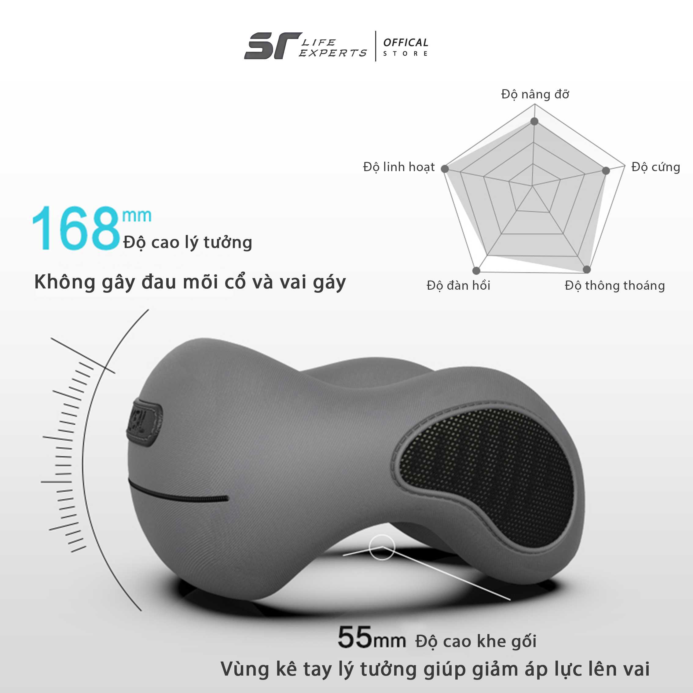 - Tính Năng : Thiết kế công thái học giúp có thể ngủ ở nhiều tư thế như: ngồi, nằm úp, nằm nghiêng.