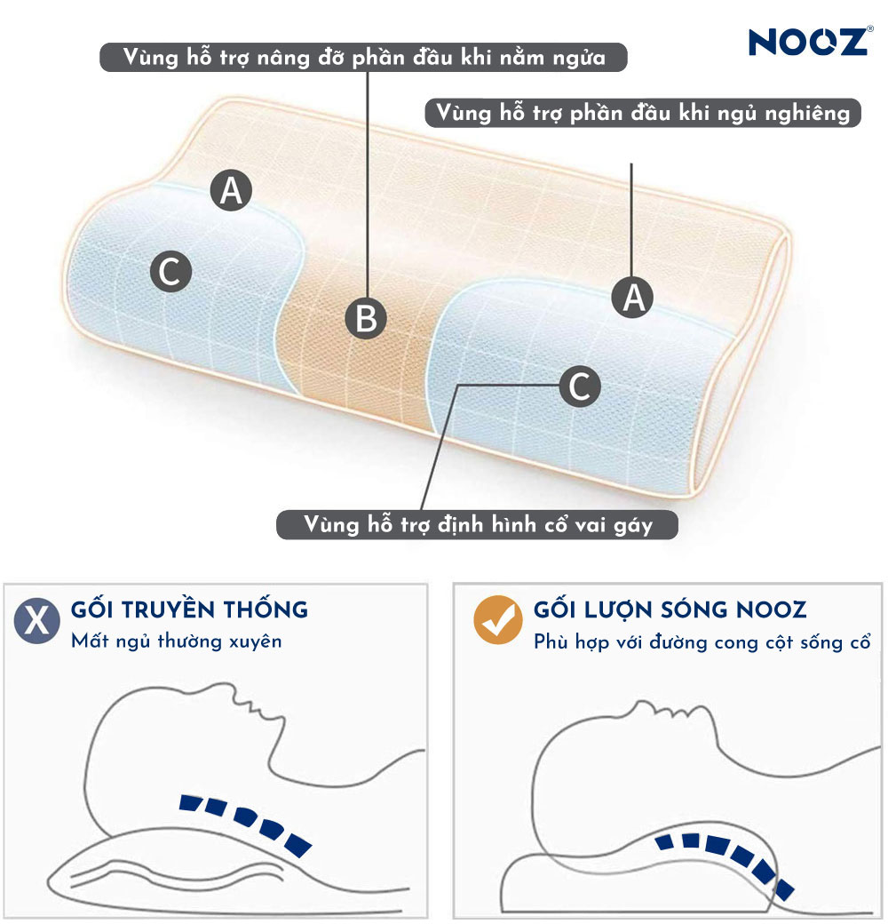 Định hình hoàn hảo cho cổ và vai của bạn khi ngủ với Gối Lượn Sóng NOOZ Home Goods. Đau đầu, đau cổ vai gáy khi thức dậy là hệ quả của việc sử dụng